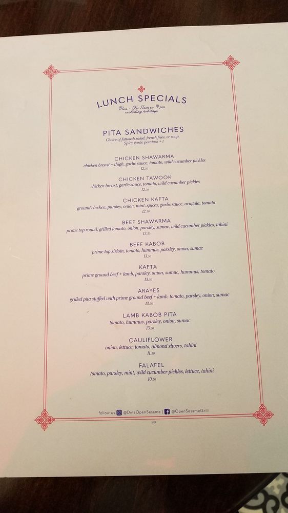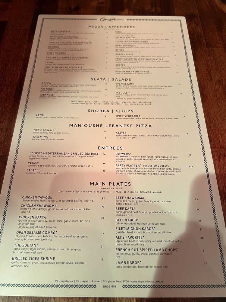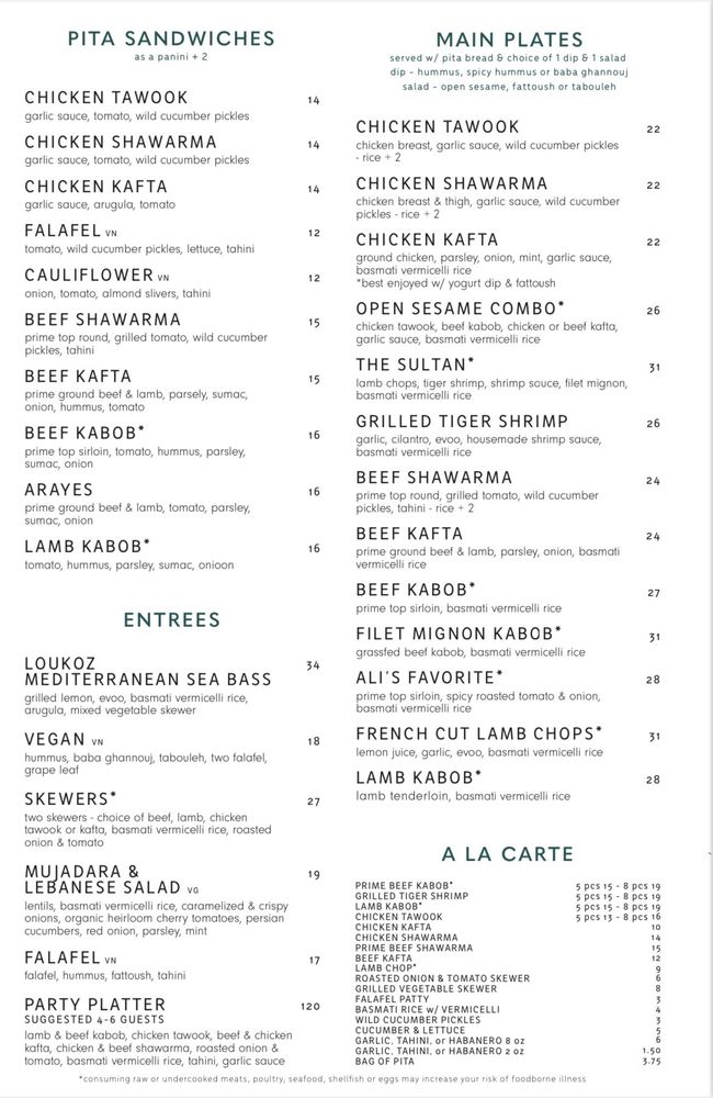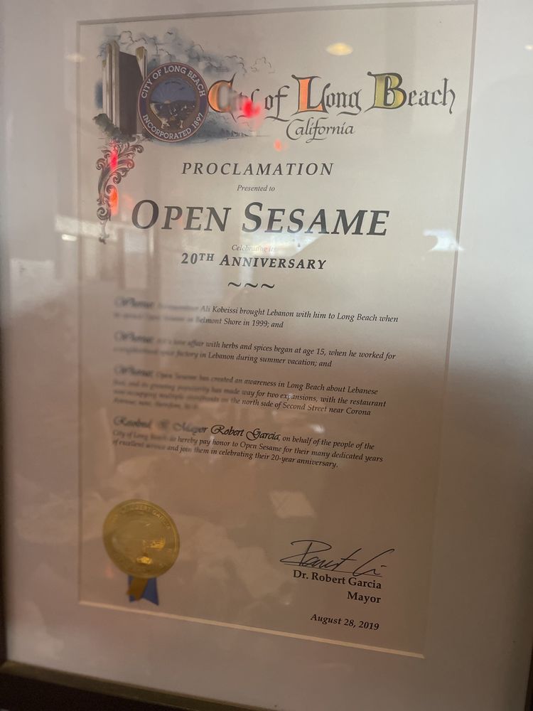 Open Sesame is a Halal restaurant located in Long Beach, CA, offering a wide range of delicious options for both meat-eaters and vegetarians. Their menu includes mouthwatering Mezza such as Arayes prime ground beef & lamb stuffed grilled pita, as well as fresh salads like Lebanese with organic heirloom cherry tomato and Open Sesame with feta cheese. You can also enjoy comforting soups like Lentil and Spicy Vegetable. This restaurant truly caters to everyone with vegan options available and plastic-free packaging for those environmentally conscious. With a variety of amenities like outdoor seating, waiter service, and happy hour specials, Open Sesame is the perfect spot for a casual meal or a group gathering. Don't miss out on the flavorful dishes and welcoming atmosphere at Open Sesame!